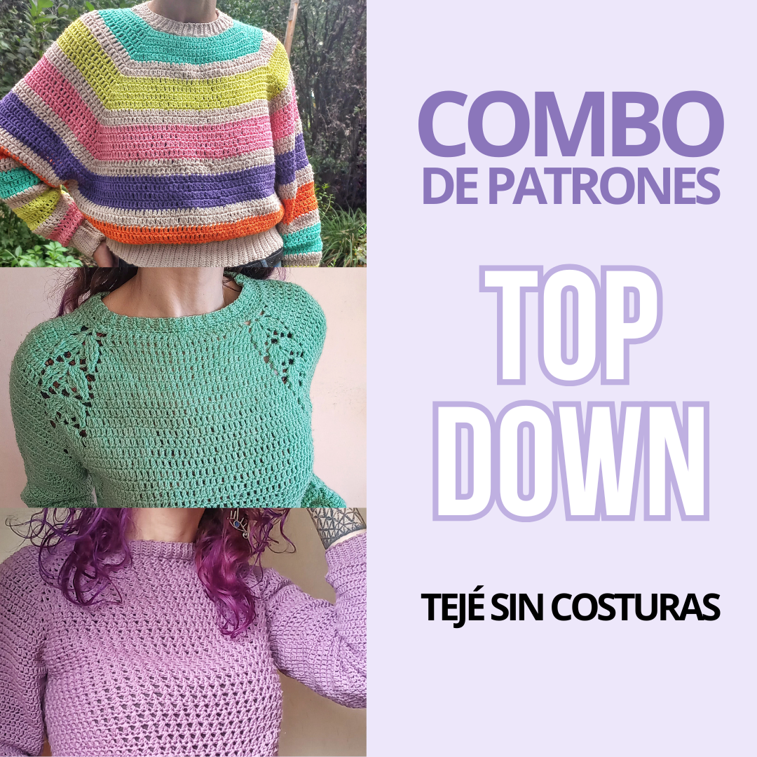 PACK Top Down | Tejé sweaters a crochet en una pieza y sin costuras